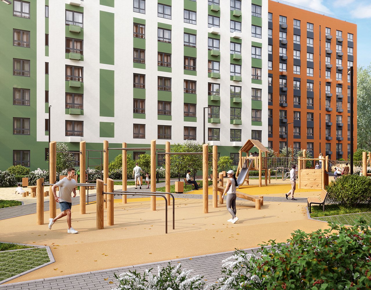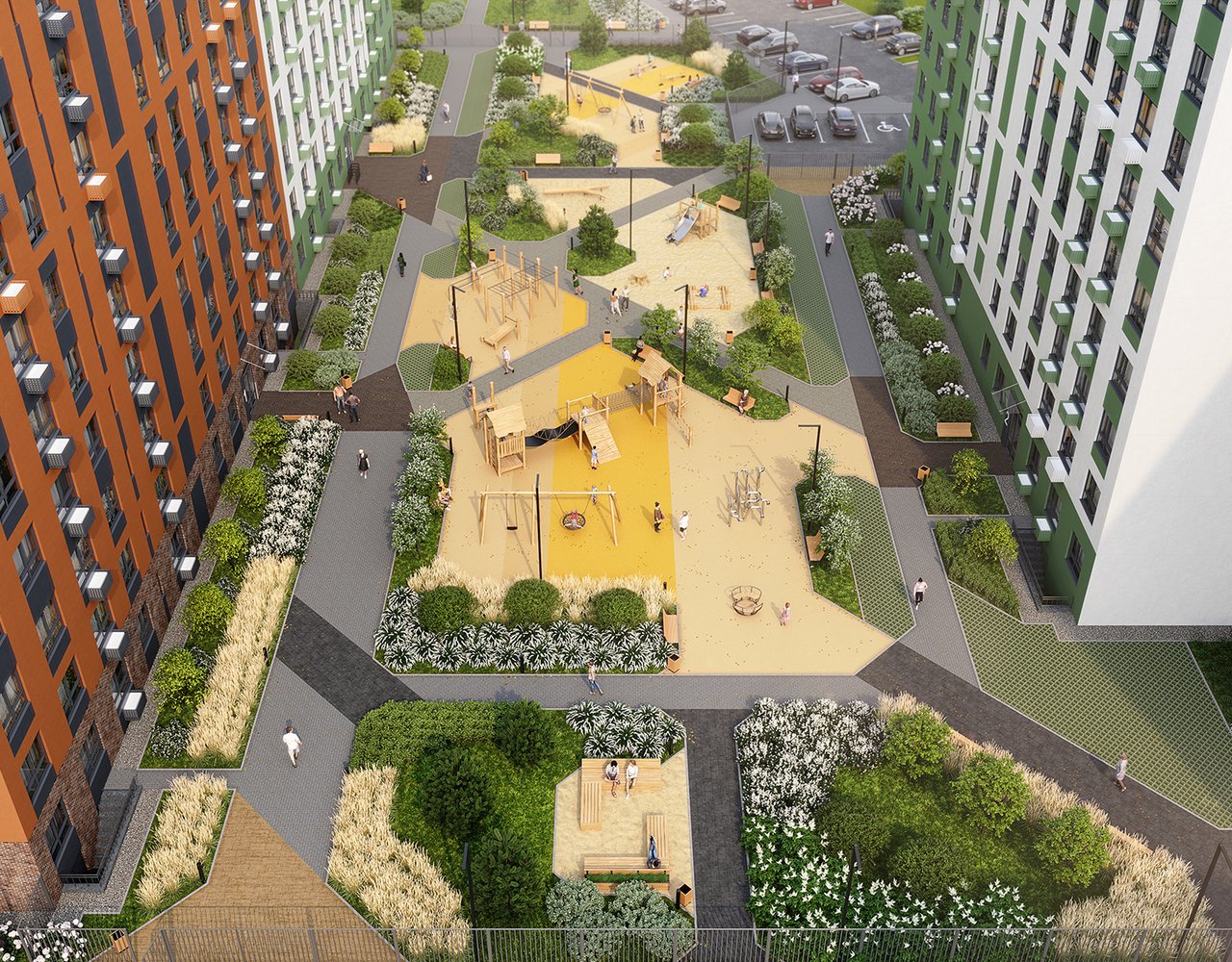 Выход из подъезда прямо во двор без машин