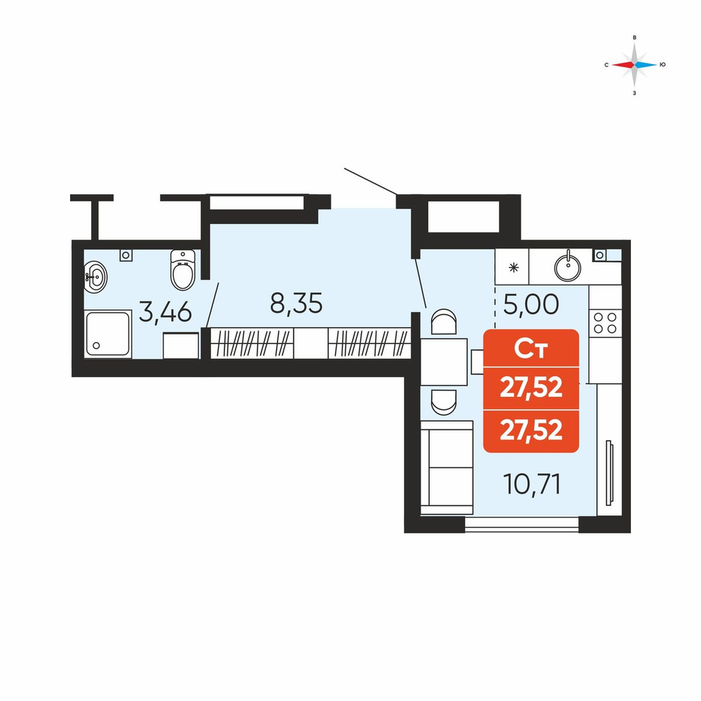 Студия 27.1 м2