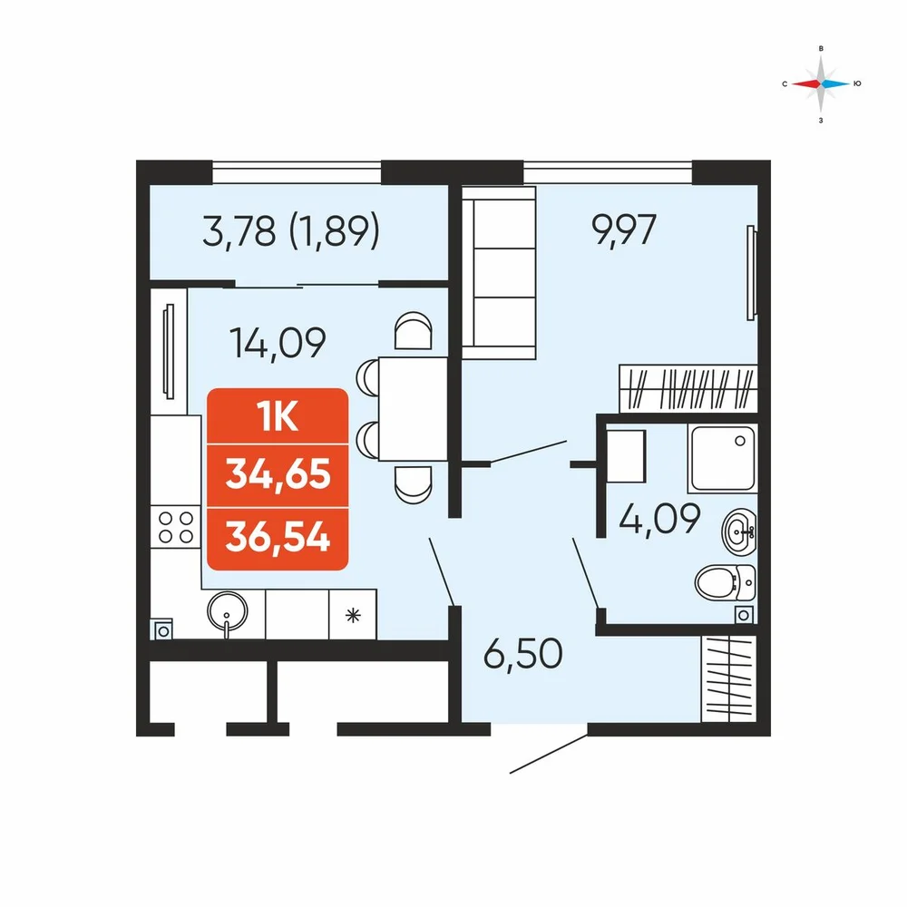 1-комнатная
