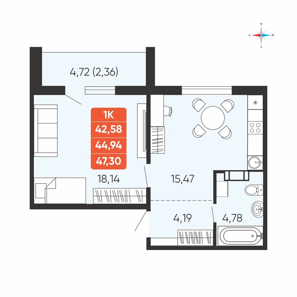 1-комнатная