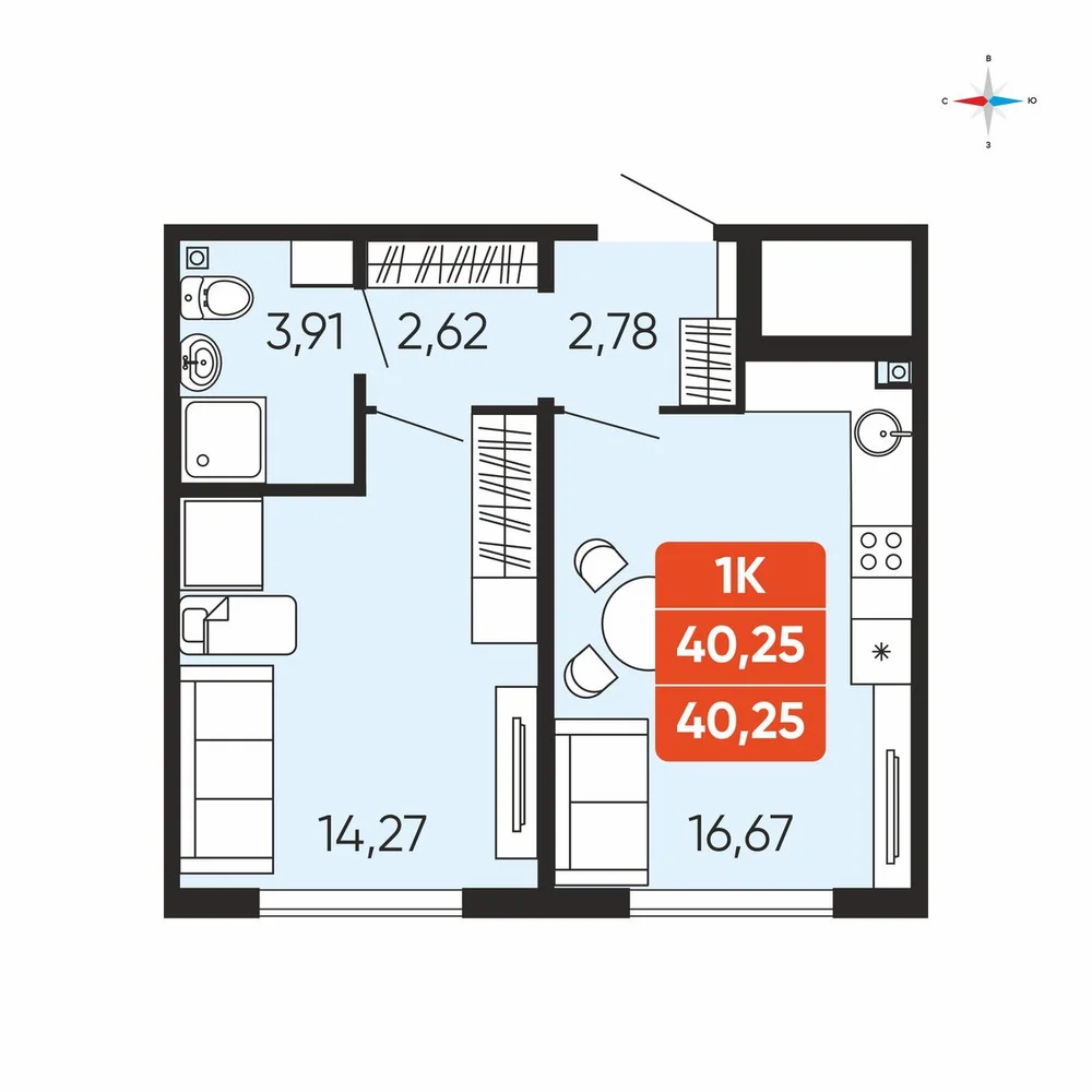 1-комнатная