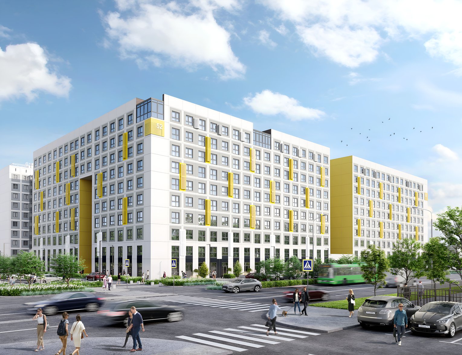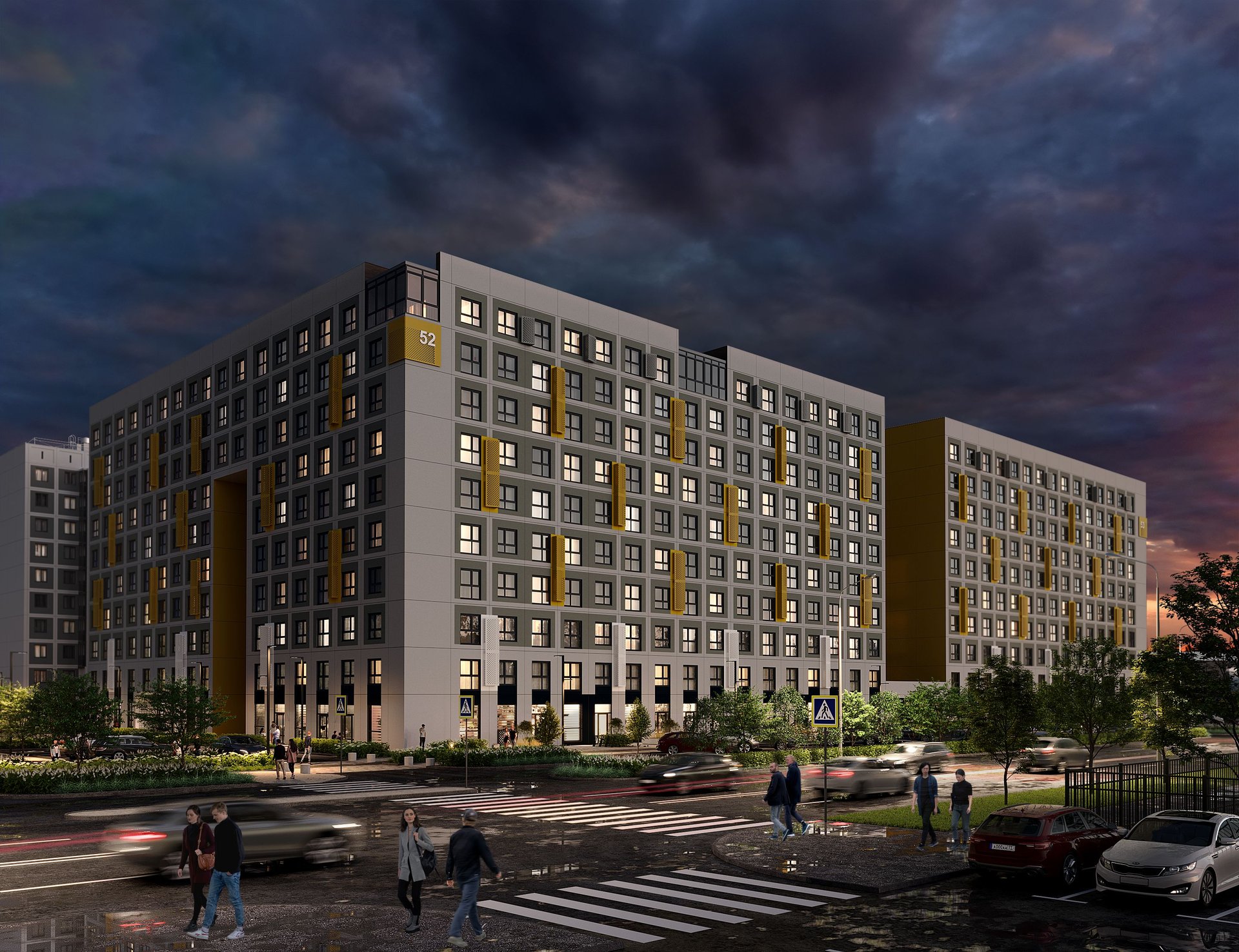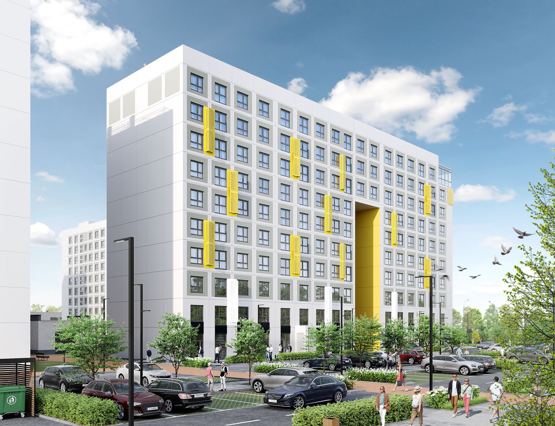 Часть квартир выходит на первую линию, где буквально через дорогу находится благоустроенная набережная и озеро Смолино.