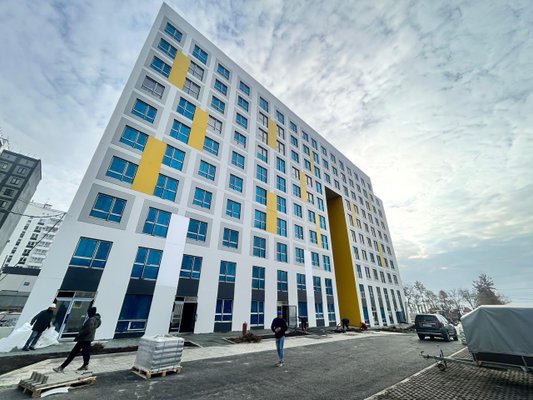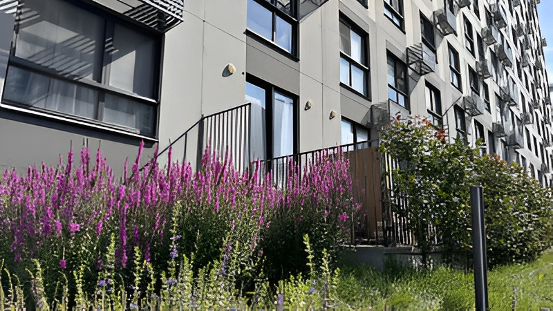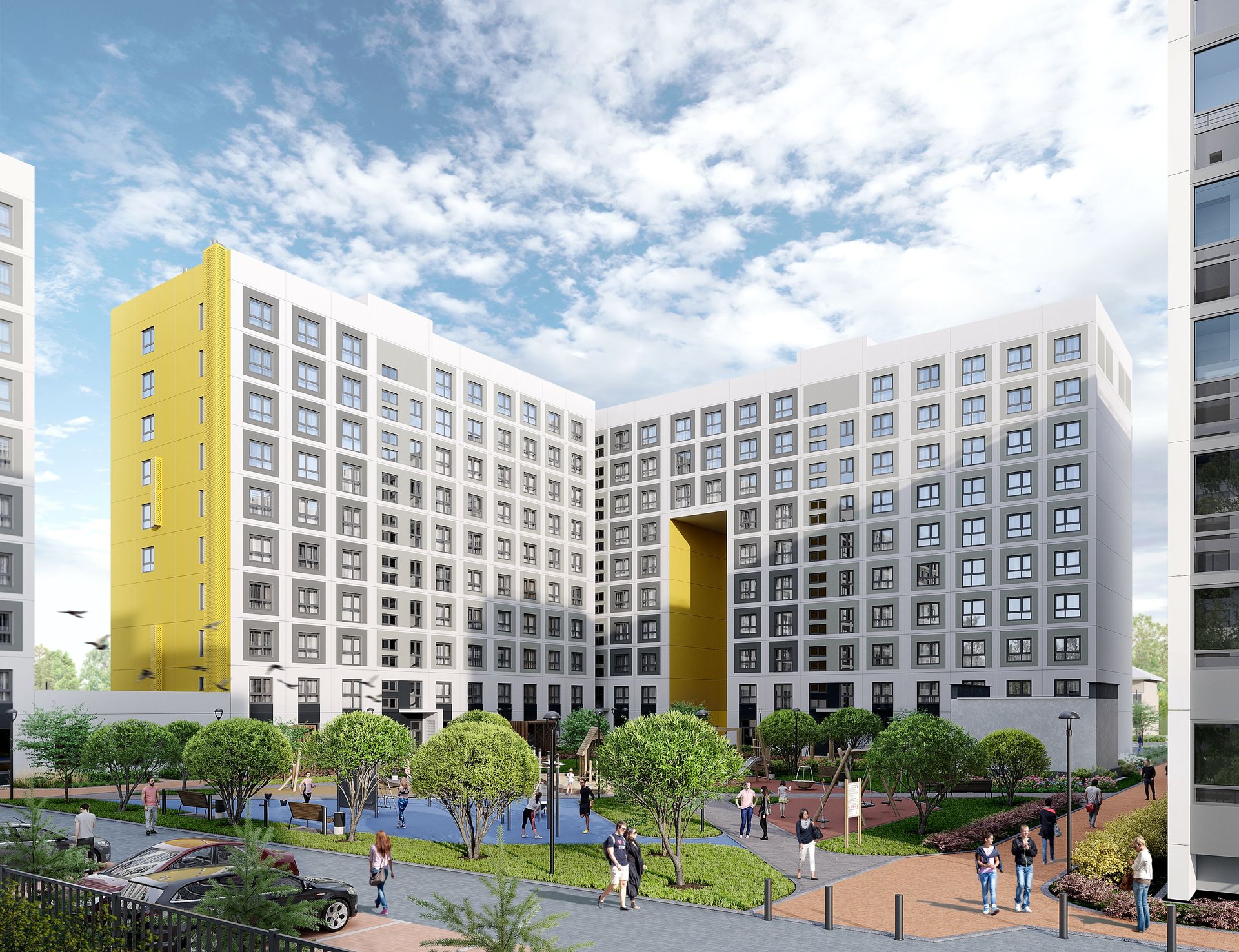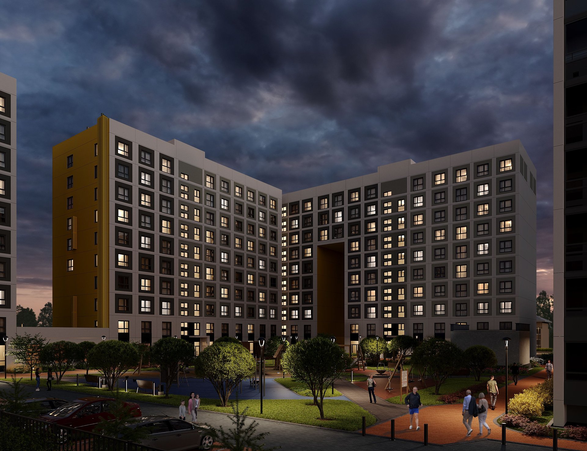 Часть квартир выходит на первую линию, где буквально через дорогу находится благоустроенная набережная и озеро Смолино.