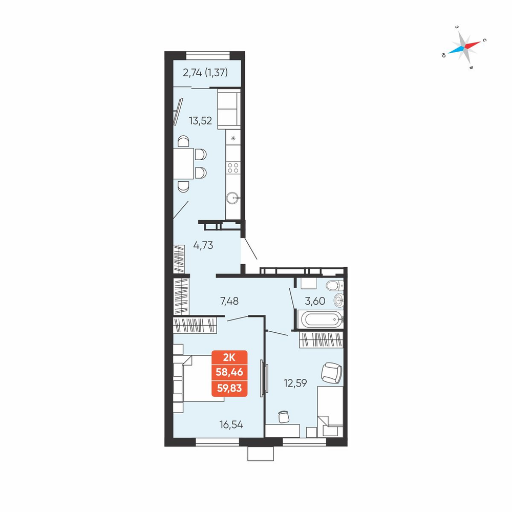 2-комнатная  65.18 м2