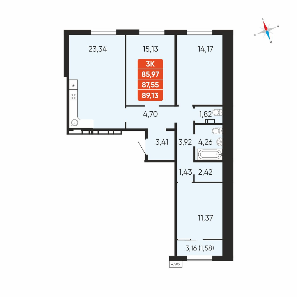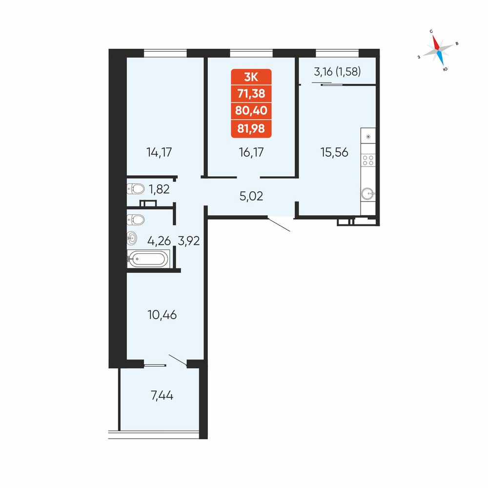 3-комнатная