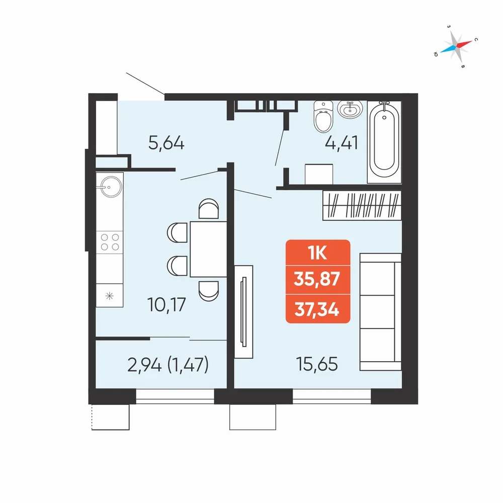 1-комнатная  39.86 м2