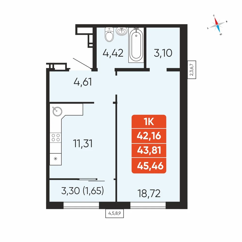 43.81 м2