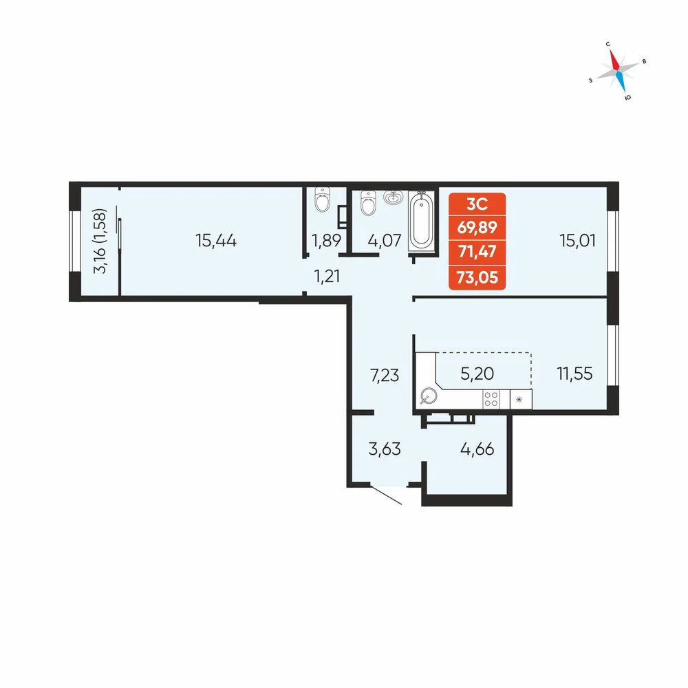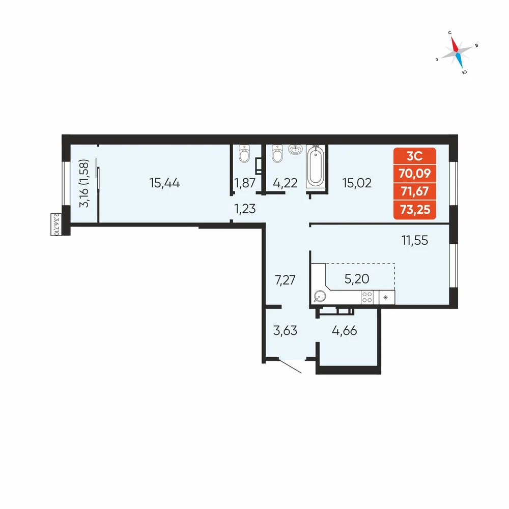 3-комнатная