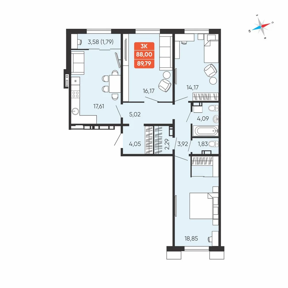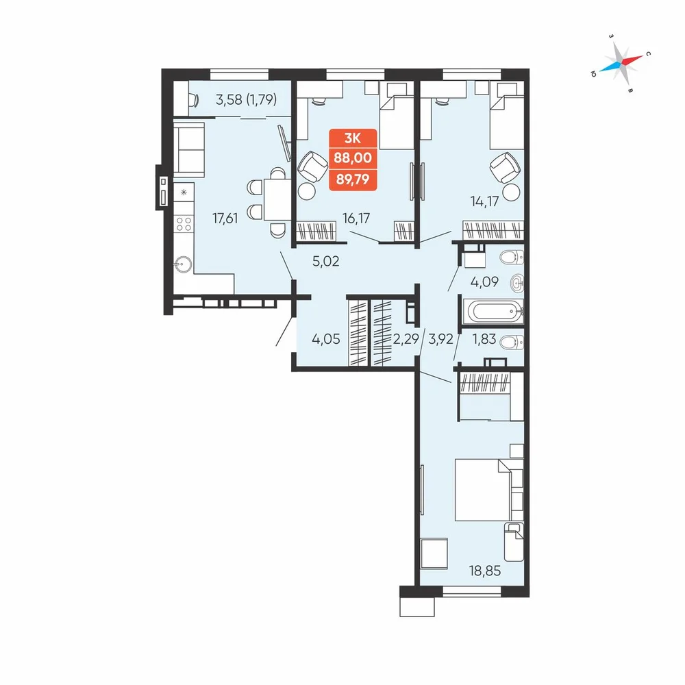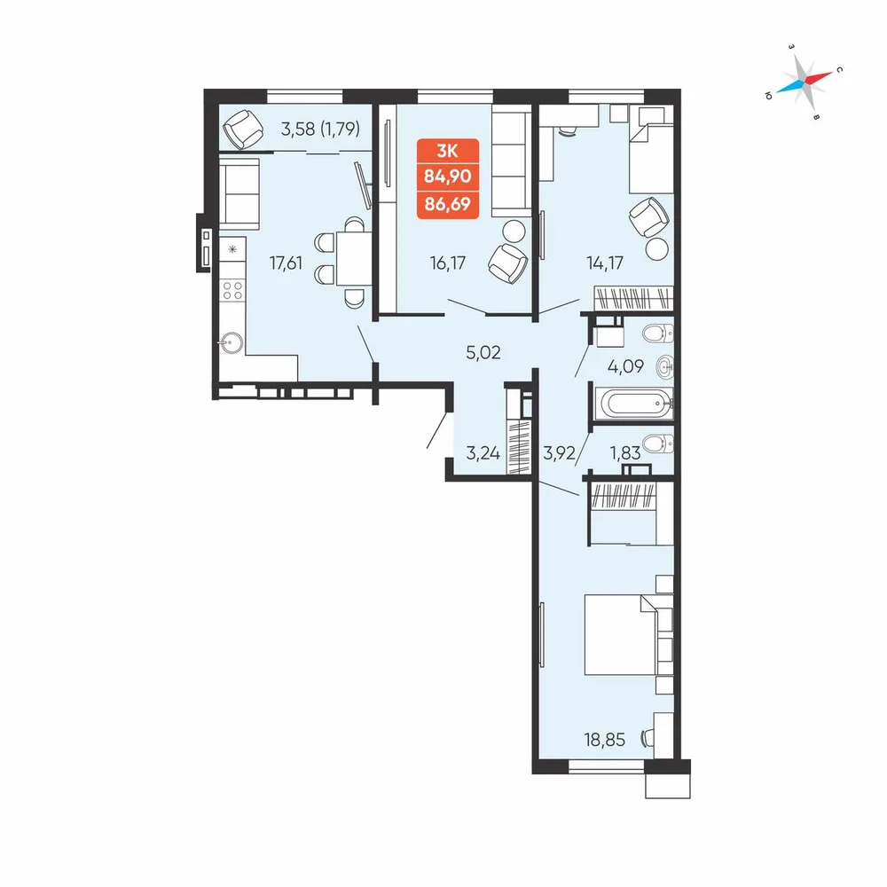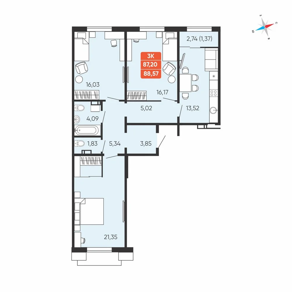 3-комнатная