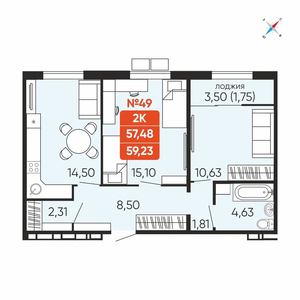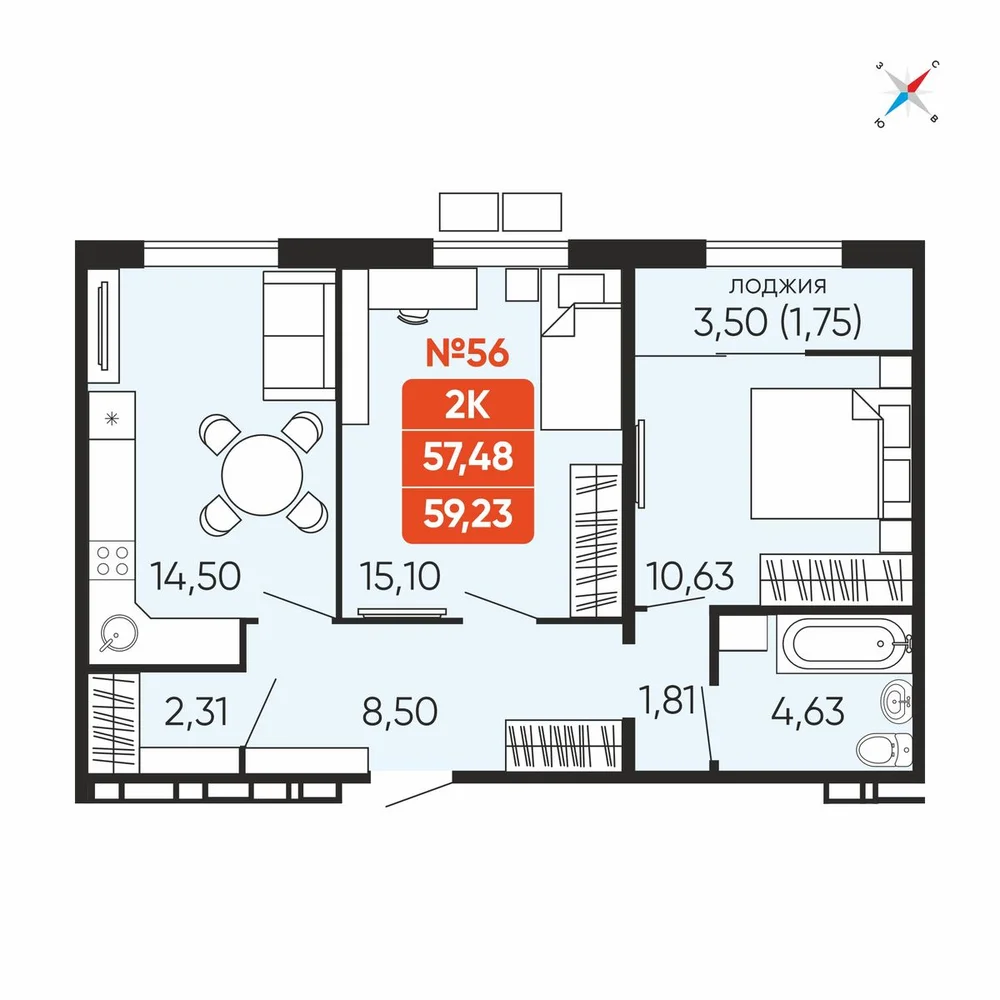 58.7 м2