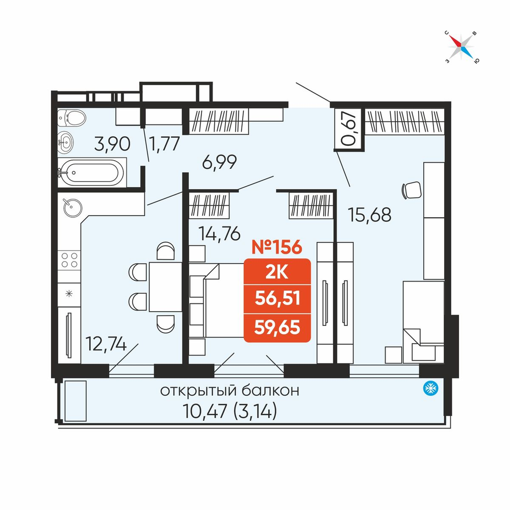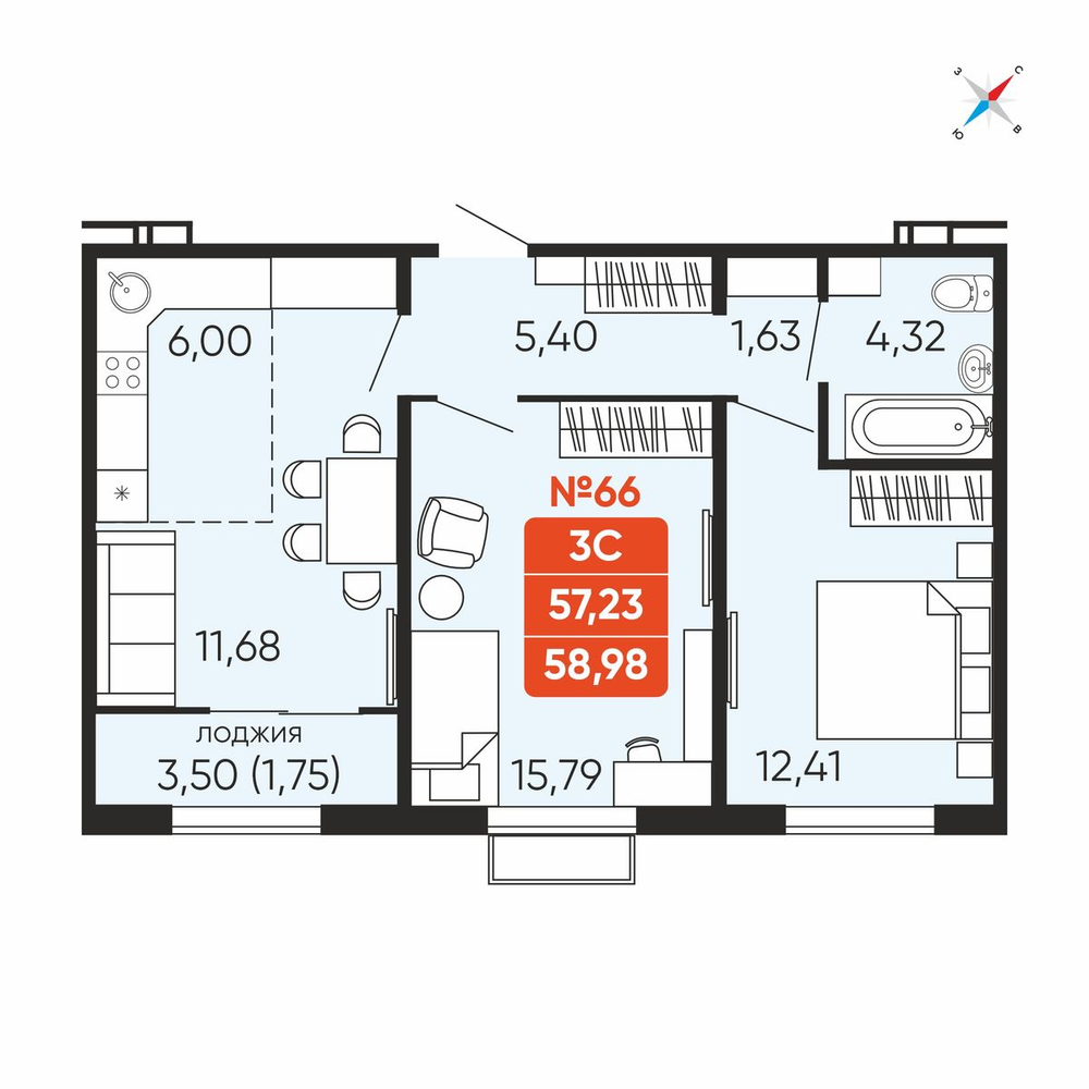 58.7 м2