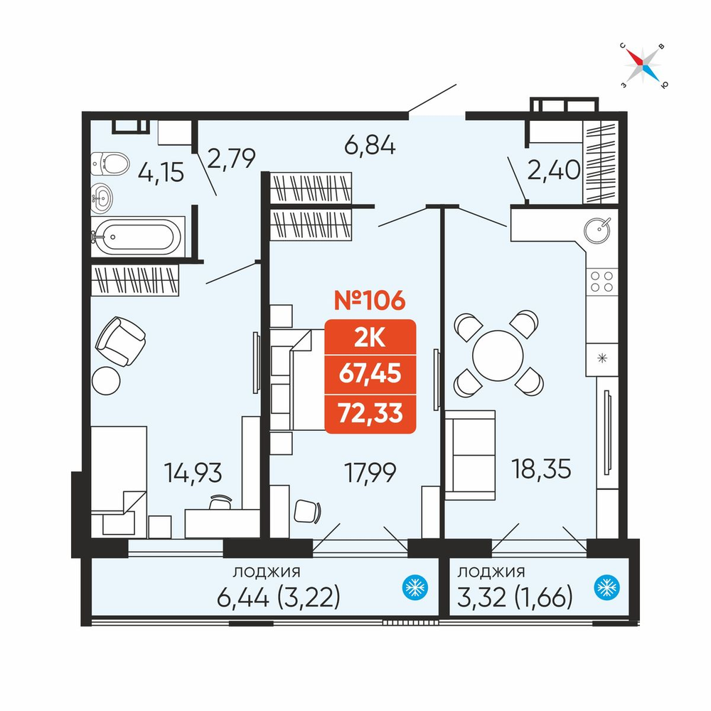 ул. Энергетиков 64, Секция 2, Этаж 6