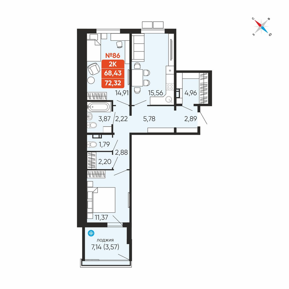 ул. Энергетиков 64, Секция 2, Этаж 7
