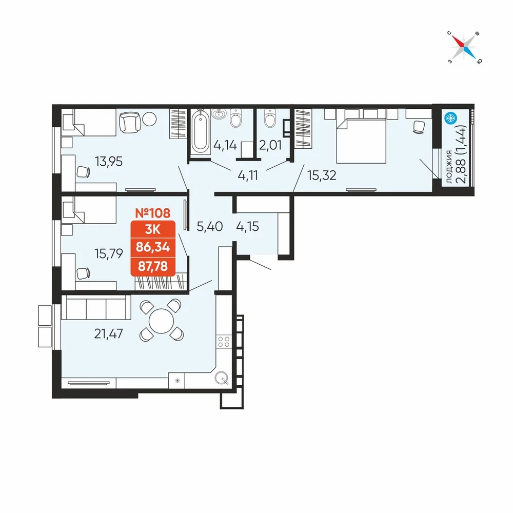 3-комнатная