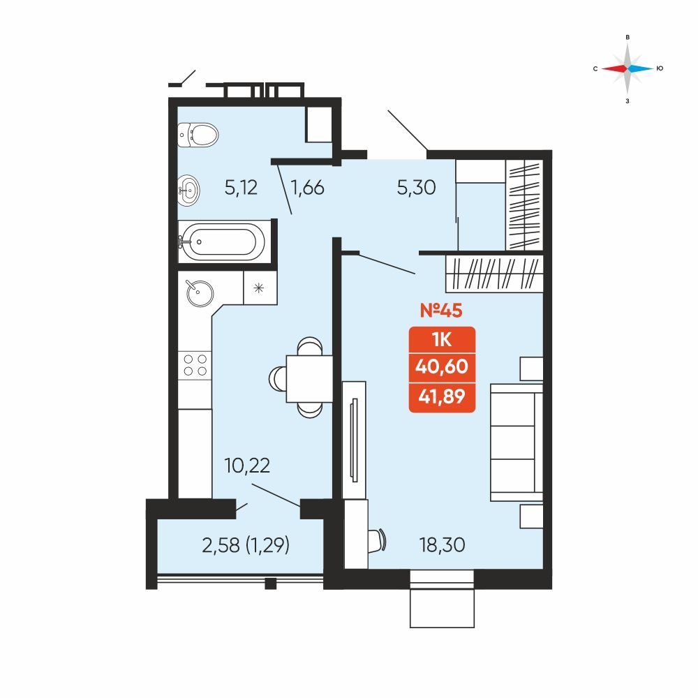 1-комнатная 38.38 м