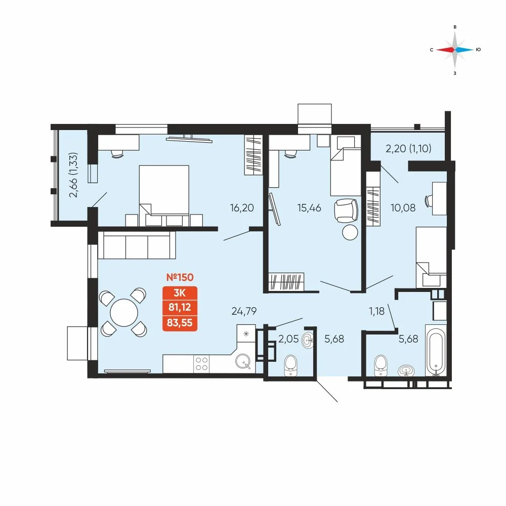 3-комнатная