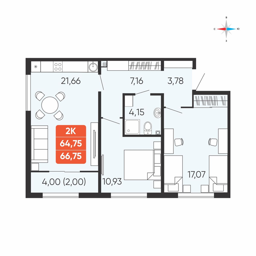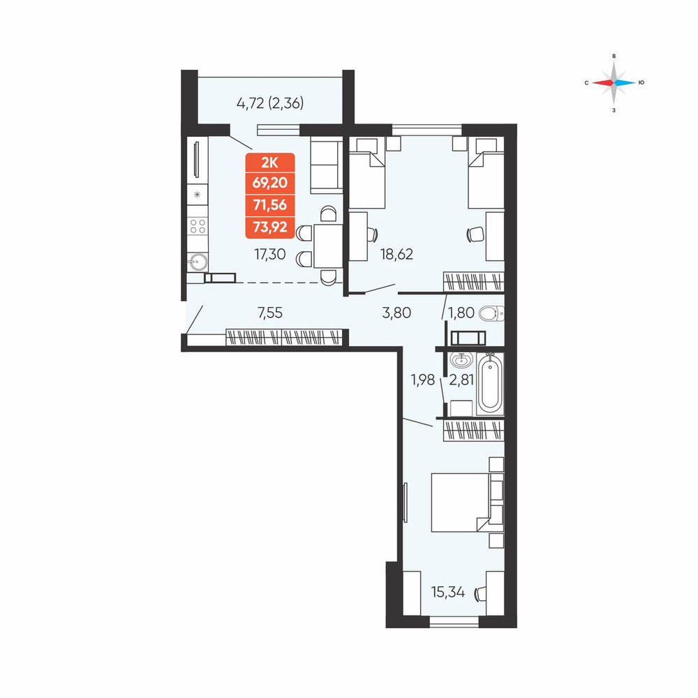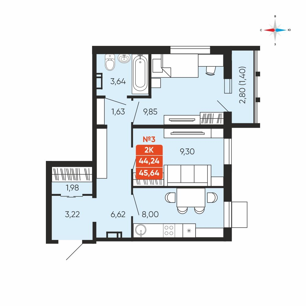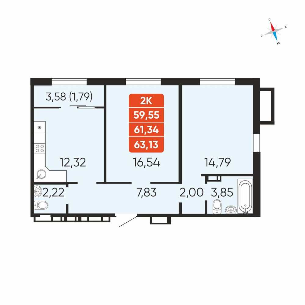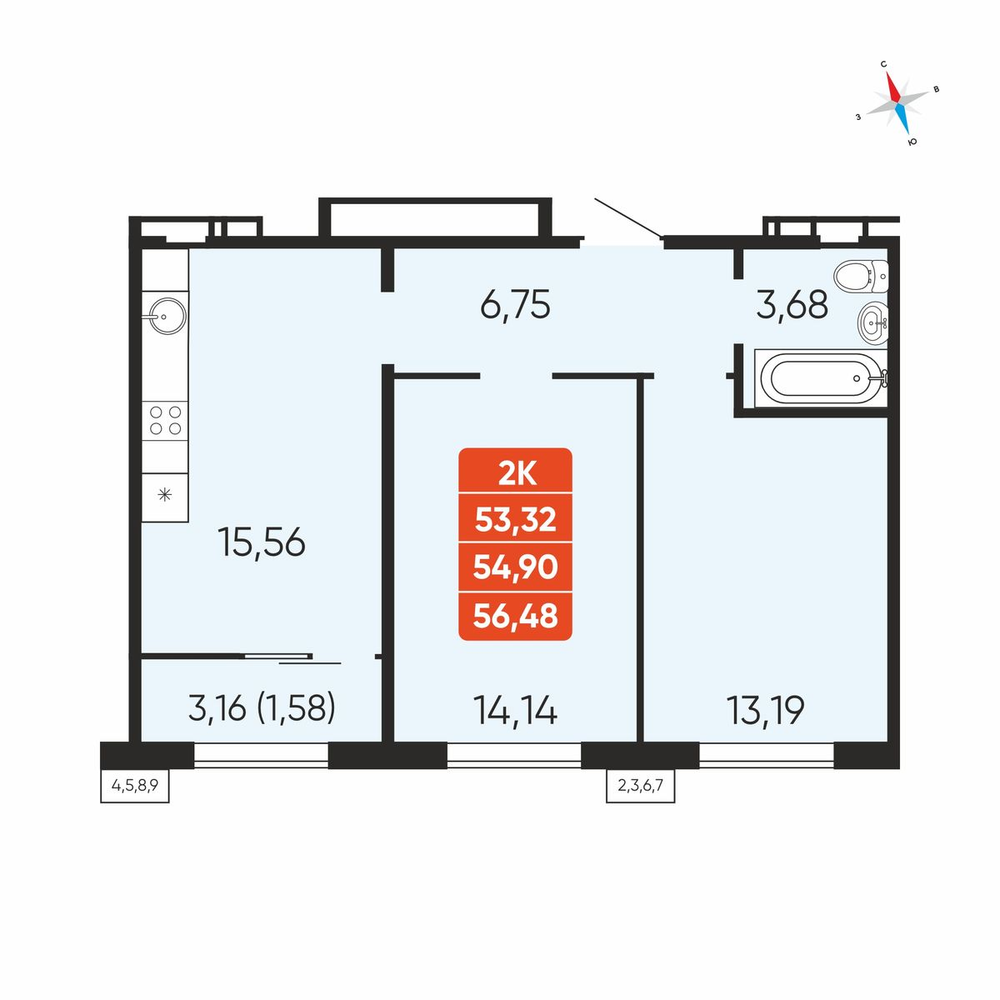 - № 2КраснопольеДом 3.2, Секция 1, Этаж 1