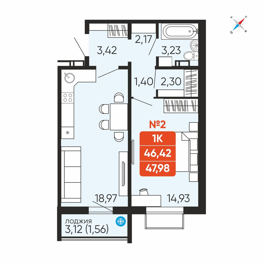 - № 2Мотивул. Новороссийская, 52.1, Секция 1, Этаж 2