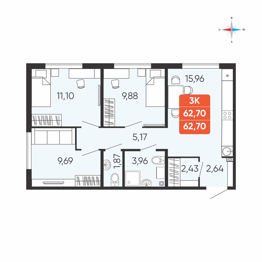 - № 3Заручейныйул. Лобкова, 33.1, Секция 1, Этаж 2
