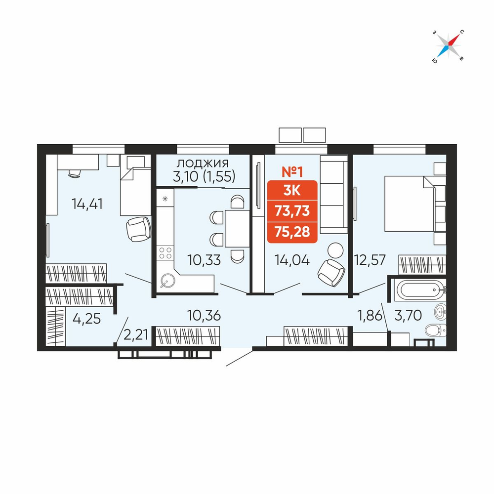 - № 1КраснопольеДом 3.2, Секция 1, Этаж 1