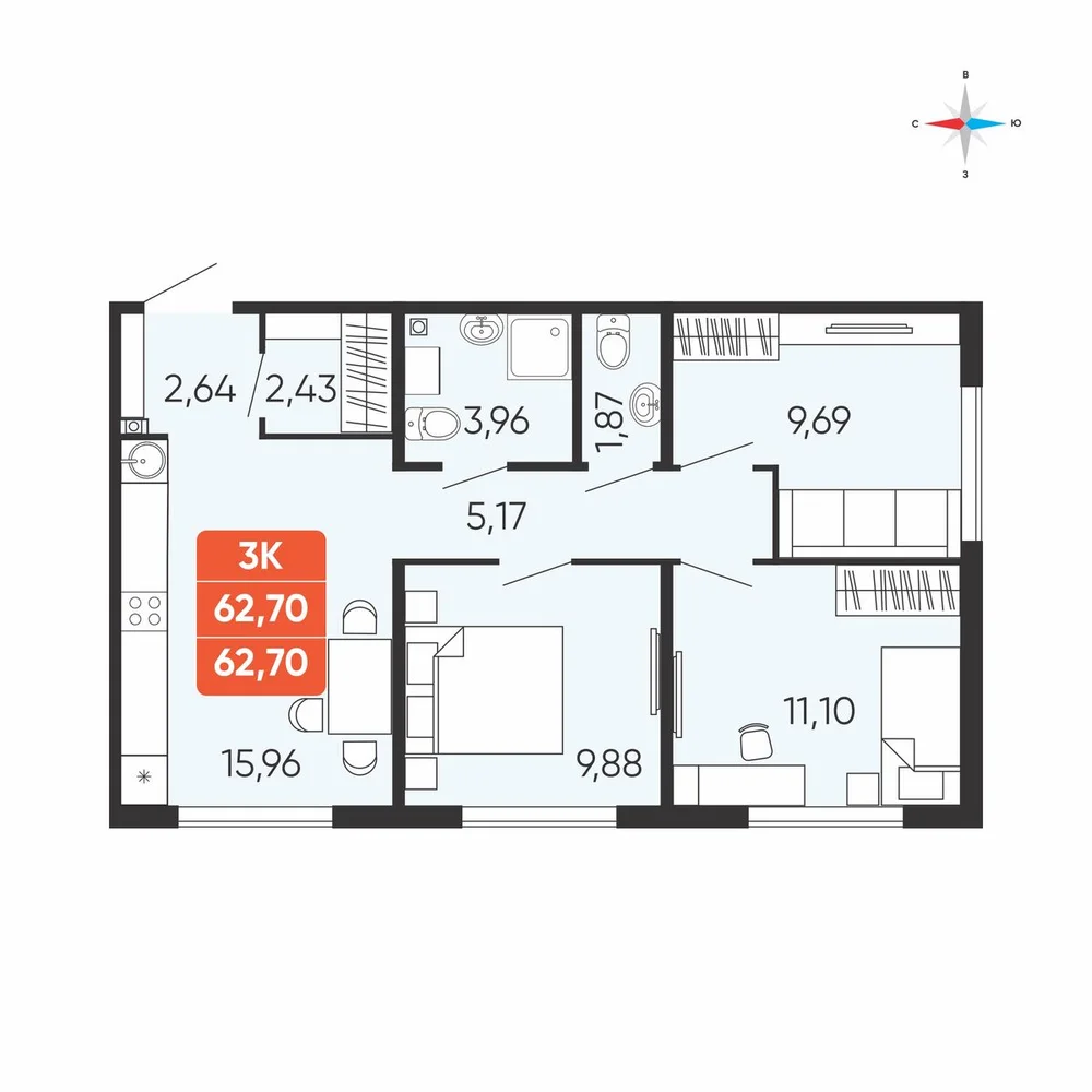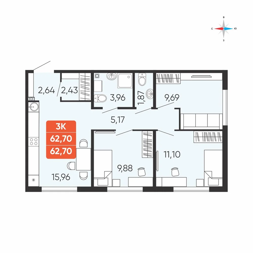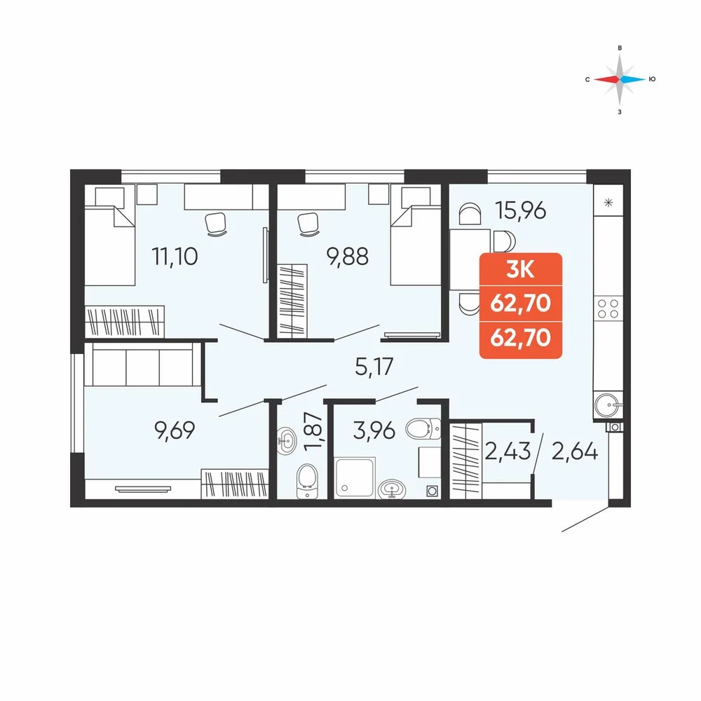 3-комнатная