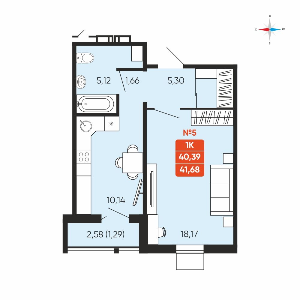 - № 5Заручейныйул. Лобкова, 33.1, Секция 1, Этаж 2