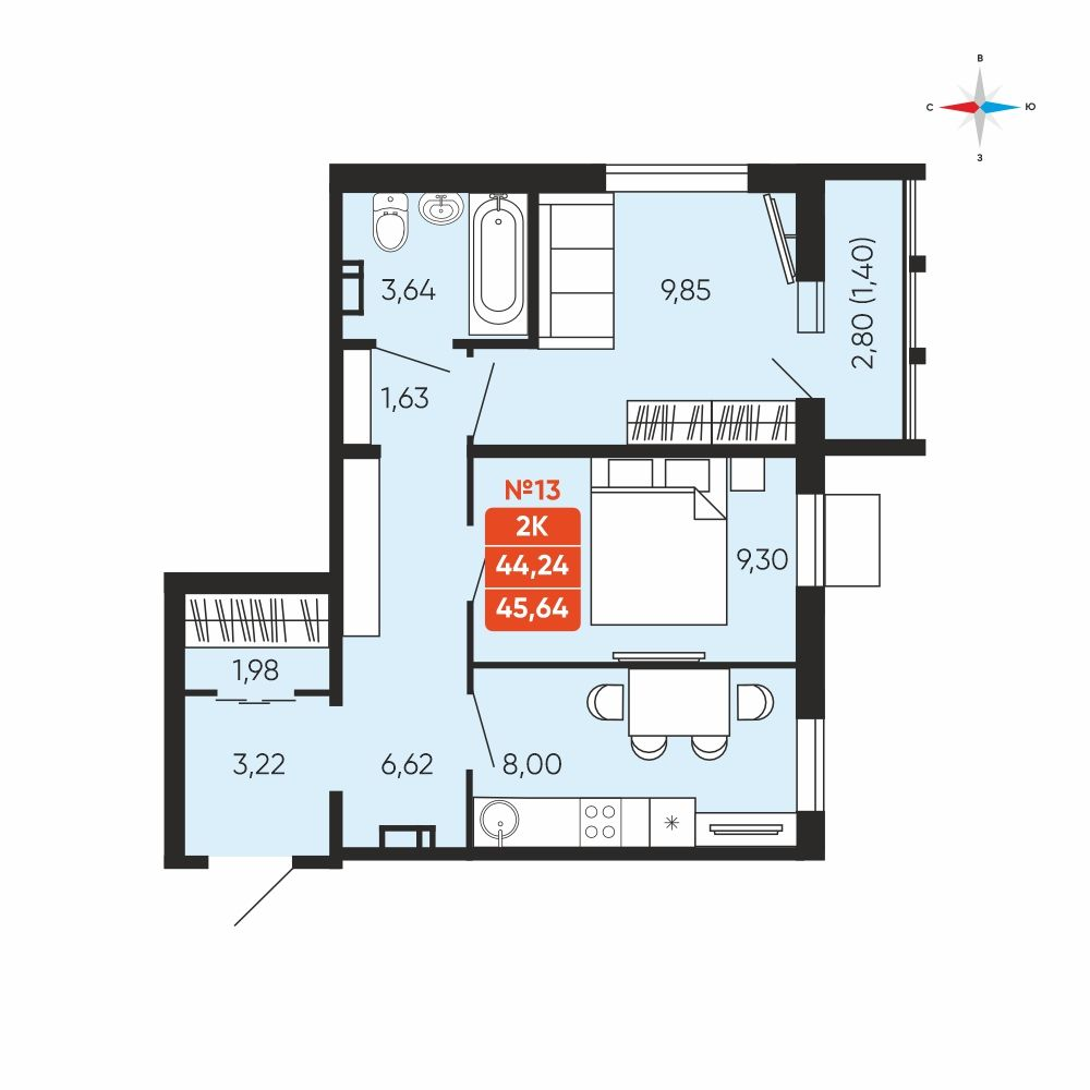 - № 13Заручейныйул. Лобкова, 33.1, Секция 1, Этаж 3