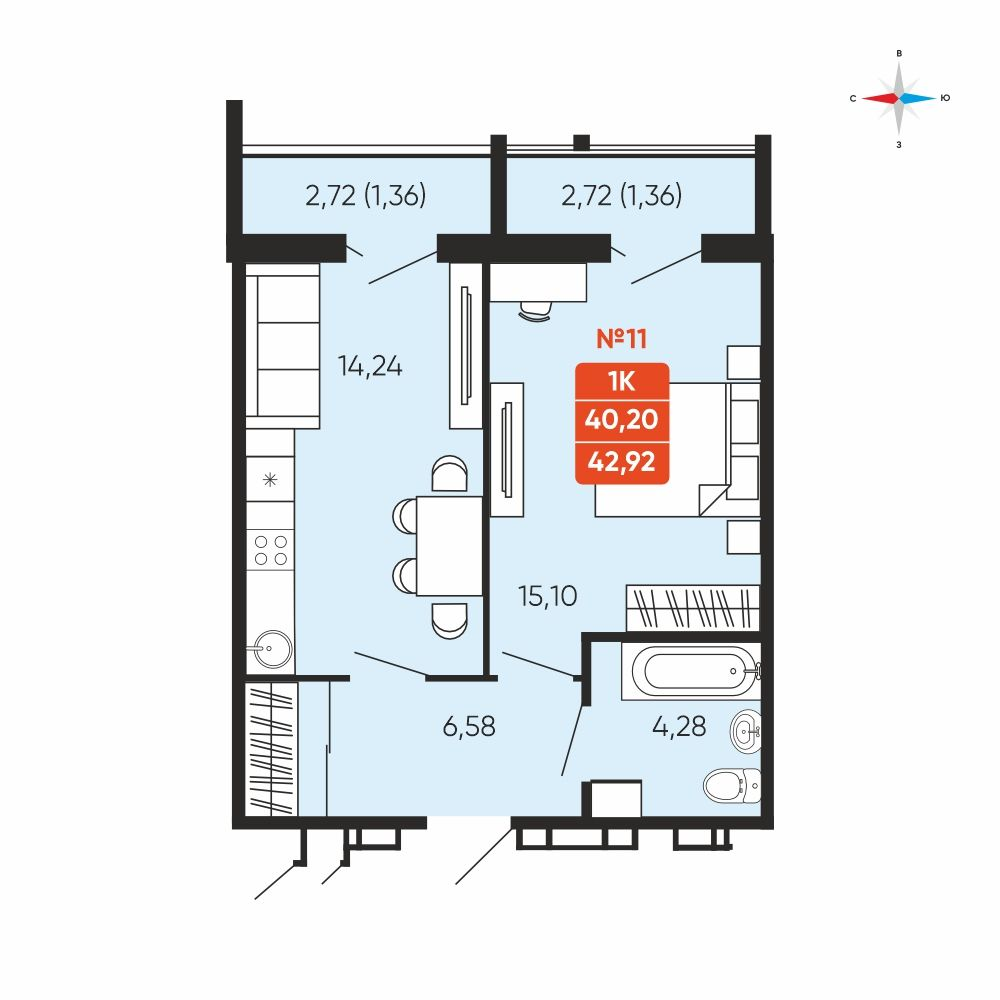 - № 11Заручейныйул. Лобкова, 33.1, Секция 1, Этаж 3