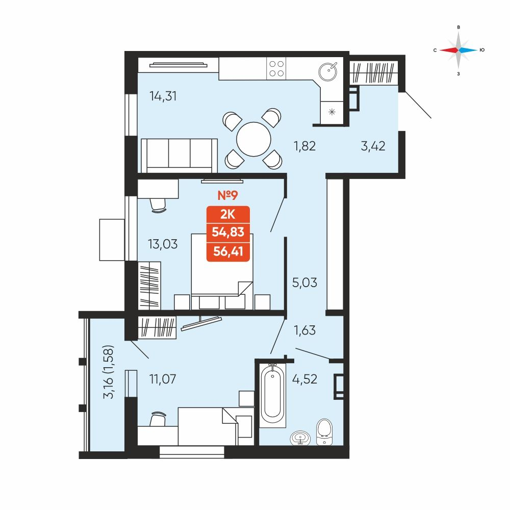 - № 14Заручейныйул. Лобкова, 33.1, Секция 1, Этаж 3
