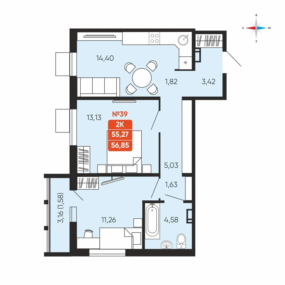 - № 14Заручейныйул. Лобкова, 33.1, Секция 1, Этаж 3