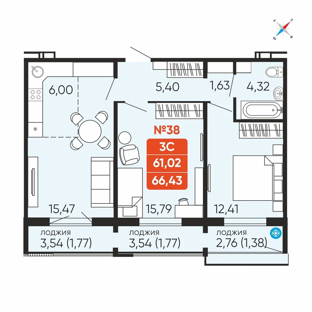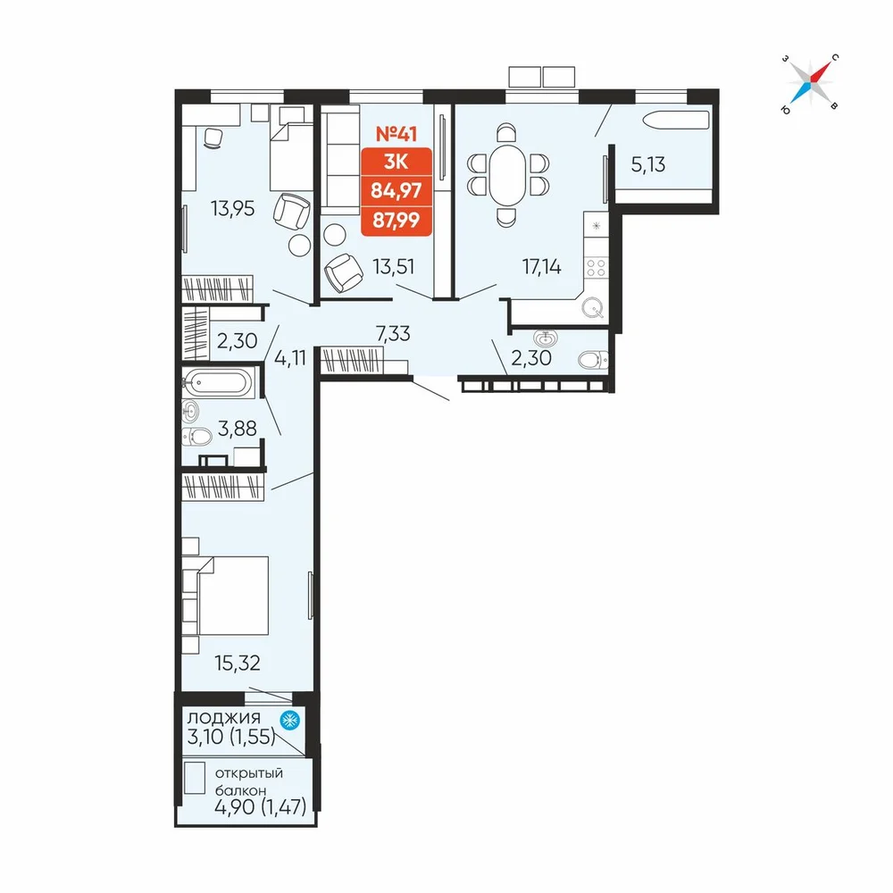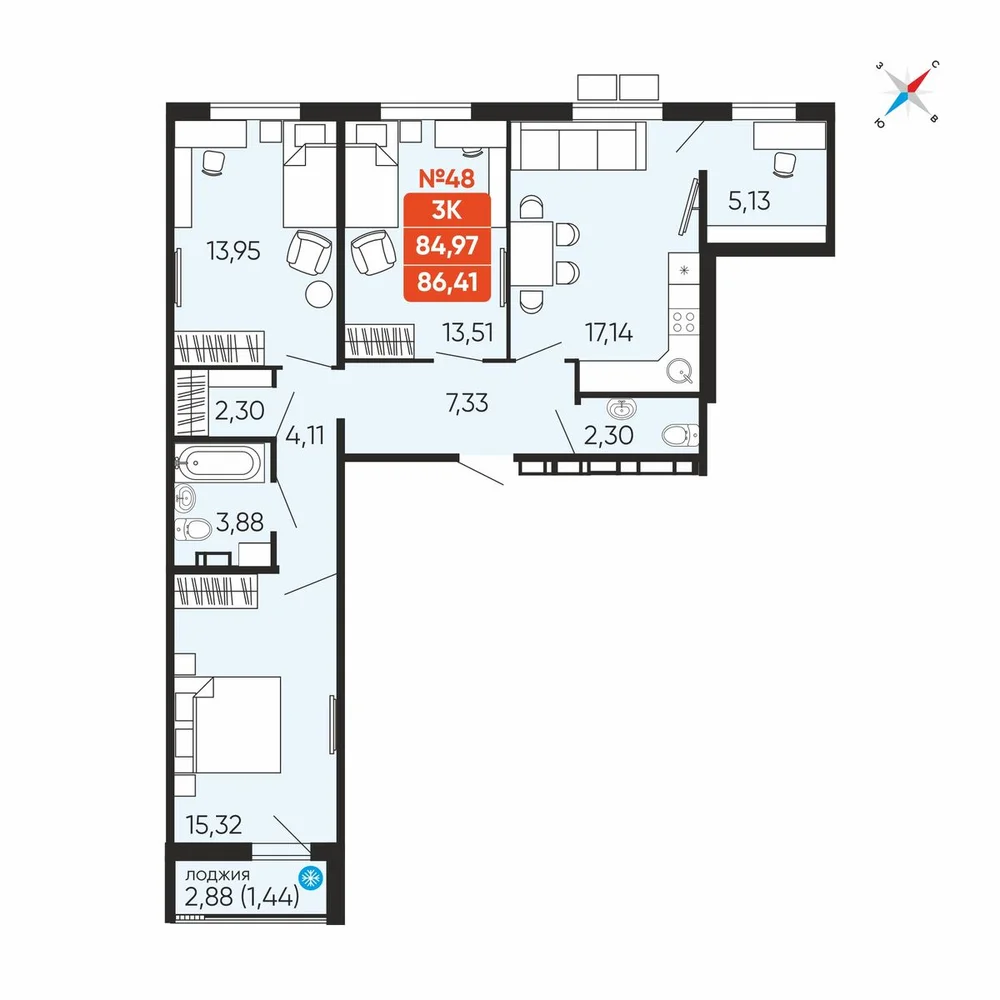3-комнатная
