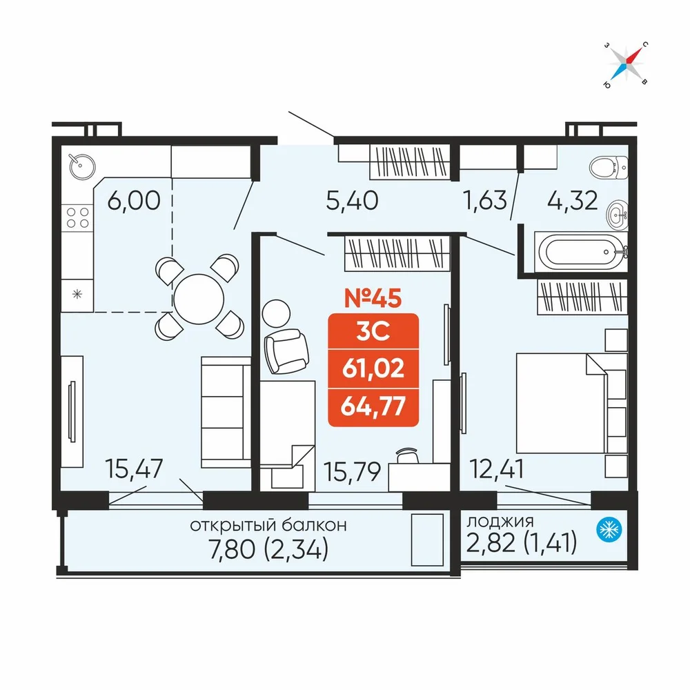 - № 45Новосторияул. Энергетиков 64, Секция 1, Этаж 7
