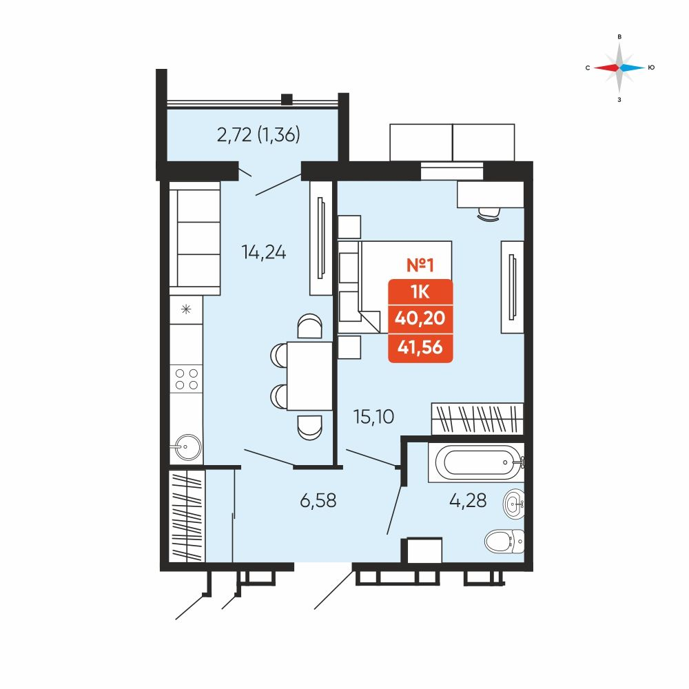 Забронировано - № 1КраснопольеДом 3.6, Секция 1, Этаж 1