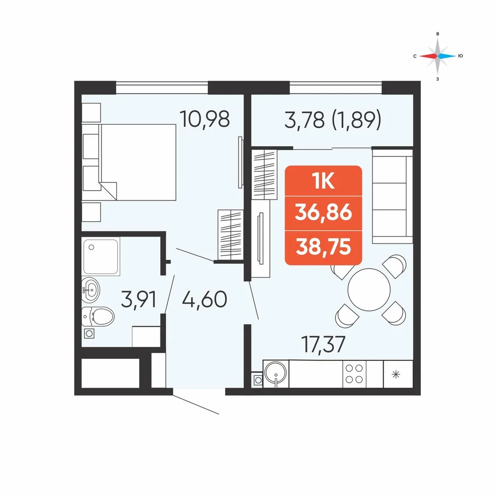 - № 3КраснопольеДом 3.8, Секция 1, Этаж 1
